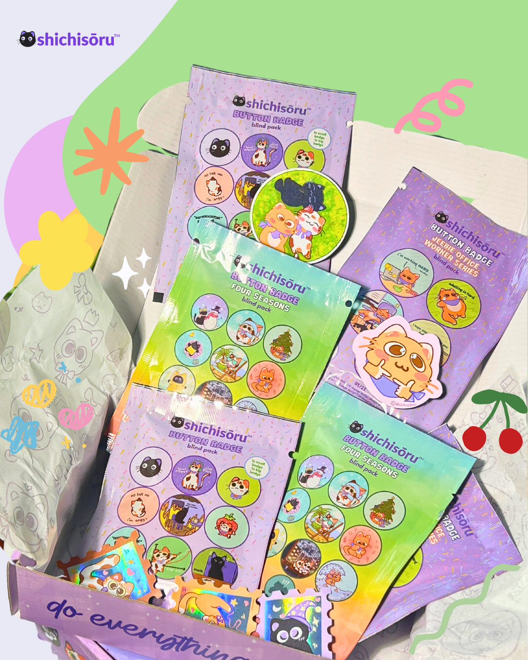Giri I really loved the pins, they are adorable. And the packaging surprised me and was really cute and engaging. But my only qualm is that each pin comes in its own plastic cover. I feel that could have been minimized by using a single bigger one maybe which can also be reused by us to store other things. I love the art on them but just feel guilty about having so much plastic for a small order.
